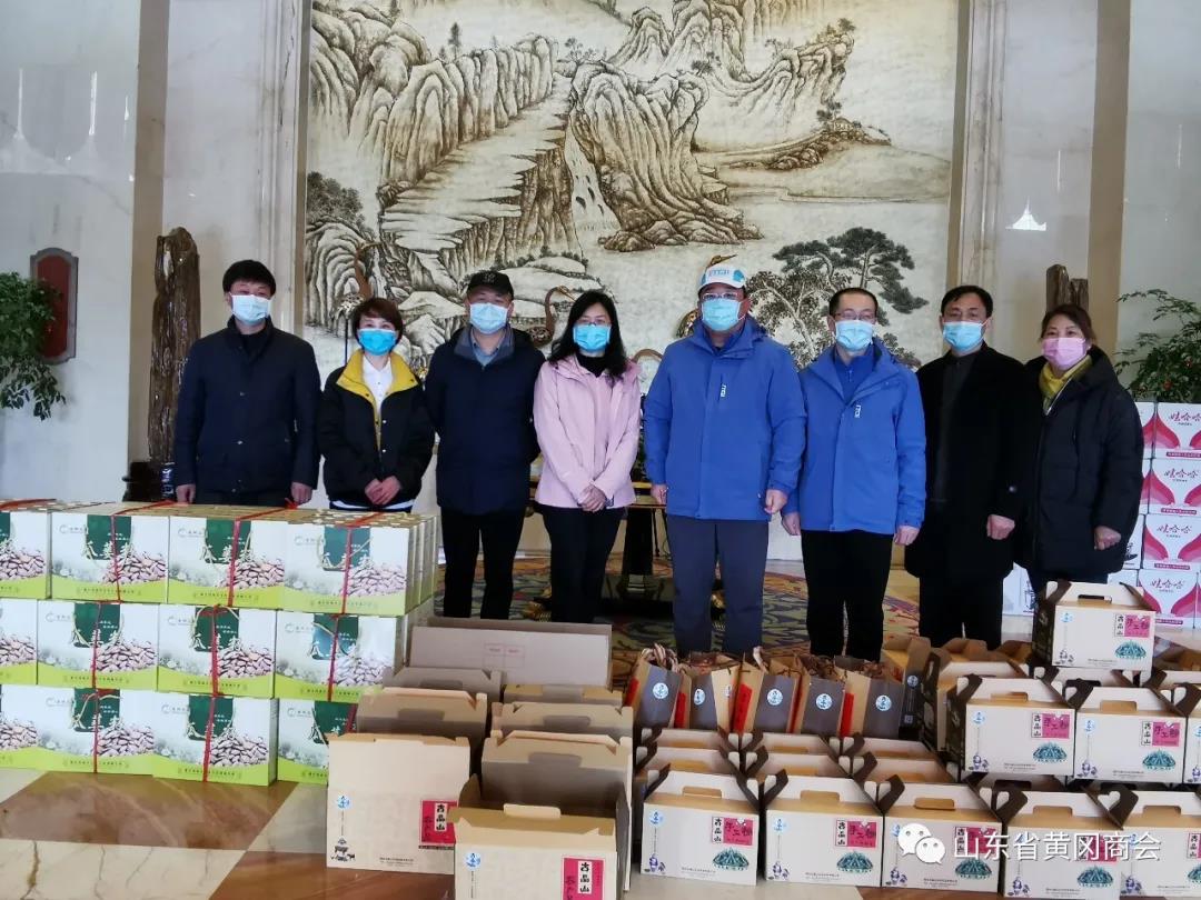 这一切,我们黄冈人民看在眼里,疼在心里。2020年3月3日,在疫情趋于稳定,在我会常务副会长何俊的多番邀请之下,在浠水蔡河镇党委书记丰峰同志的带领下,蔡河镇当地农企(瓜蒌基地,葛根基地)等负责人自发组织,一起来到医疗队下榻的浠水天泽大酒店,慰问已经奋战了一个多月的山东援鄂医疗队。因医疗队绝大部分战士还奋战在救援一线,医疗队李队长、翟队长2人代表医疗队接受了浠水人民的慰问。