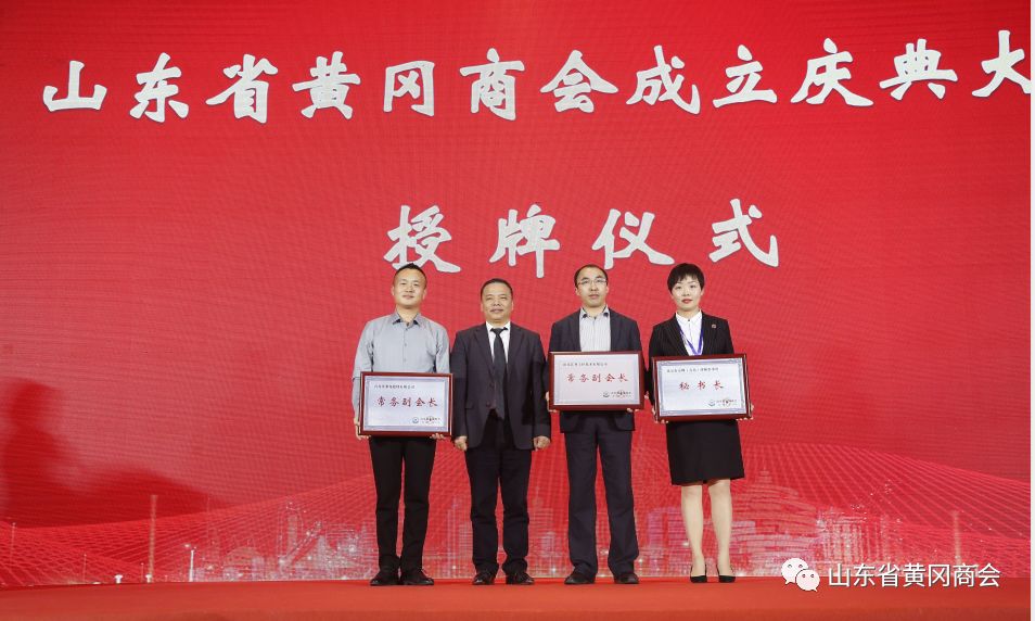 会议在庄严的国歌声中拉开序幕。山东省民政厅政策法规处处长周亚军宣读了山东省黄冈商会成立的批复文件并向黄冈商会成立表示祝贺。随后,到会嘉宾为商会授牌、商会领导和顾问一起为商会理事以上单位授牌。