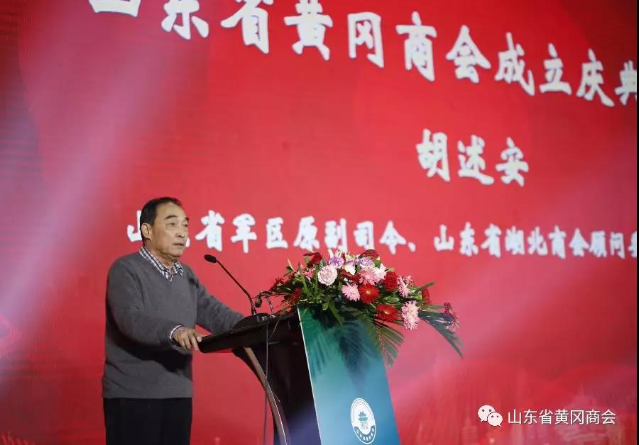 山东省湖北商会顾问委员会主任、原山东省军区副司令员胡述安将军讲话:他表示:作为一名老湖北人,他见证了山东省湖北商会近8年的风雨历程。最深的感触就是商会一定要团结。他期待山东省黄冈商会在梅青会长的带领下,齐心协力、团结一心!为在山东的黄冈老乡们搭建好平台,为山东和黄冈的经济建设做出自己的贡献。