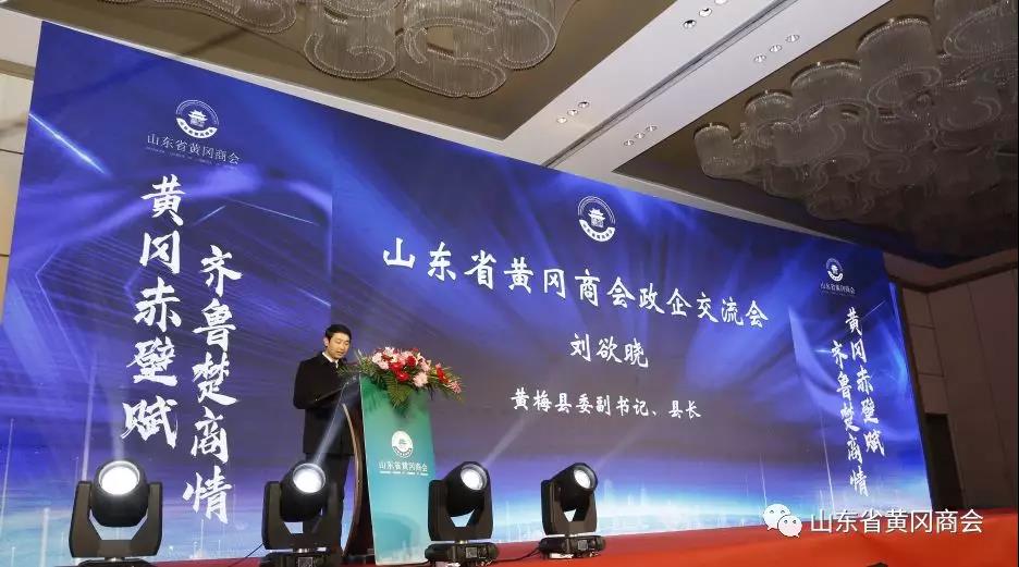 政企交流会最后,黄梅县县委副书记、县长刘欲晓先生讲话。他表示:作为黄梅家乡走出来的商界精英,我们为梅青会长感到无比骄傲和自豪。祝贺山东省黄冈商会2020年会的顺利召开,感谢山东省黄冈商会能在山东为家乡提供招商推介的机会。作为鄂东门户的黄梅欢迎所有家人们回家投资兴业。