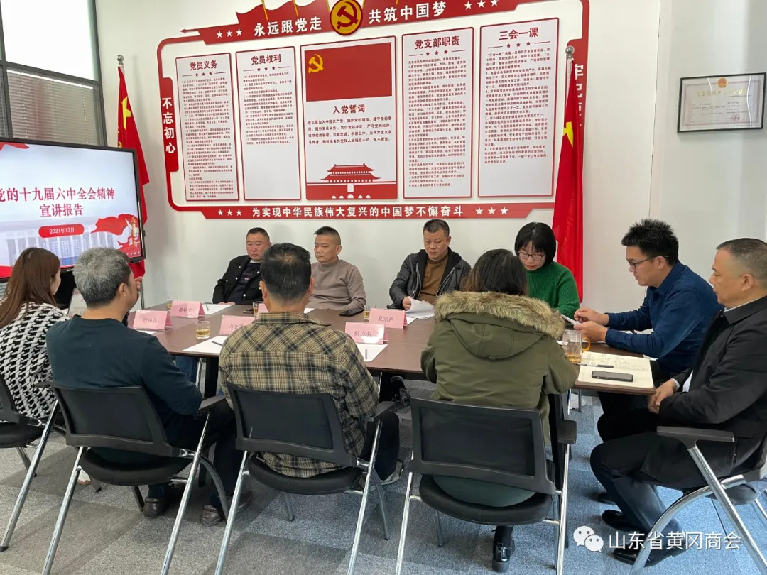根据中共青岛市非公有制经济组织综合委员会的工作安排,2021年12月13日上午九点半,商会党支部组织会员集中深入学习党的十九届六中全会精神,并结合学习情况进行了讨论、交流。会议由党支部书记汪少华主持,会长梅青、监事长白欣育、秘书长万君、本月轮值会长何志强;副会长夏宗艳、邓益群、万亚凌;理事瞿科文以及秘书处徐冉冉参加了会议。
