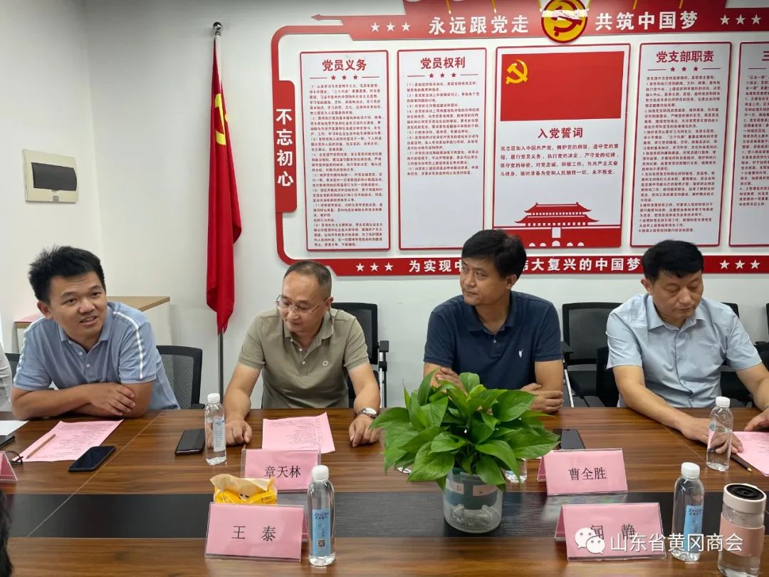 在我们的轮值会长章天林、党支部书记汪少华、常务副会长陶胜友的陪同下,对商会办公室进行了全面的参观。会议室里,双方人员依次进行了自我介绍。我会轮值会长章天林对到访的家乡领导一行表示热烈的欢迎,并详细介绍了我会的建设情况及组织架构,随后大家一同观看了商会的宣传片。章天林表示:“共话楚商精神新涵义,畅言鄂鲁两地发展新机遇,是我们山东省黄冈商会存的价值和意义之一。站在新的历史起点,我们要有敏锐的洞察力,审时度势,顺应时代的呼唤,秉持和积极践行“相安、相助、相利、相长”的办会理念,以服务会员、服务社会,充分发挥平台和桥梁作用,团结和带领在鲁黄冈企业家携手同心,务实创新,聚力发展,为促进会员企业的发展和推动鄂鲁两地的合作交流做出我们应有的贡献。”