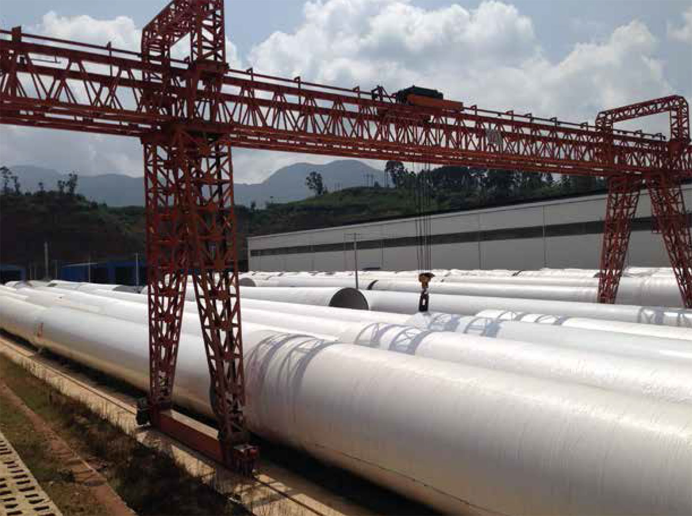 公司青岛总部占地面积373333㎡(560 亩),其中厂房面积48500㎡(73亩)、堆场存 放面积100000㎡(150亩)。公司持有压力容 器D1、D2级别制造许可证;通过了ISO9001 质量管理体系认证、ISO14001环境管理体 系和职业健康安全管理体系认证,国家电投 公司的1000KW、3000KW、6000KW电能产 品认证,以及通过了EN1090产品认证。公司 汇聚了大批优秀的专业技术人才,包括有多 年从业经验的钢结构专家、焊接工程师、结 构防腐工程师和无损探伤工程师。公司自成 立以来不断研究和改进塔筒生产工艺,在塔 筒设计和制造方面取得了十余项国家发明 专利,并连续多次被认定为青岛市高新技术 企业。作为专业的陆上及海上风电兆瓦级风 机塔筒制造企业,公司成功量产 1.5MW-6.45MW等多种规格风机的配套塔筒,并在140m和162m全钢柔性塔筒、 120m全混塔筒、120m钢混塔筒等方面均有 成功案例。目前整个集团公司年均塔筒生产 能力达到1600-2000套,折合塔筒加工重量 为40万吨。锚栓年均生产能力达到1000套。