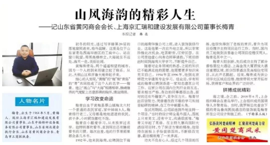 ——记山东省黄冈商会会长、上海京汇瑞和建设发展有限公司董事长梅青