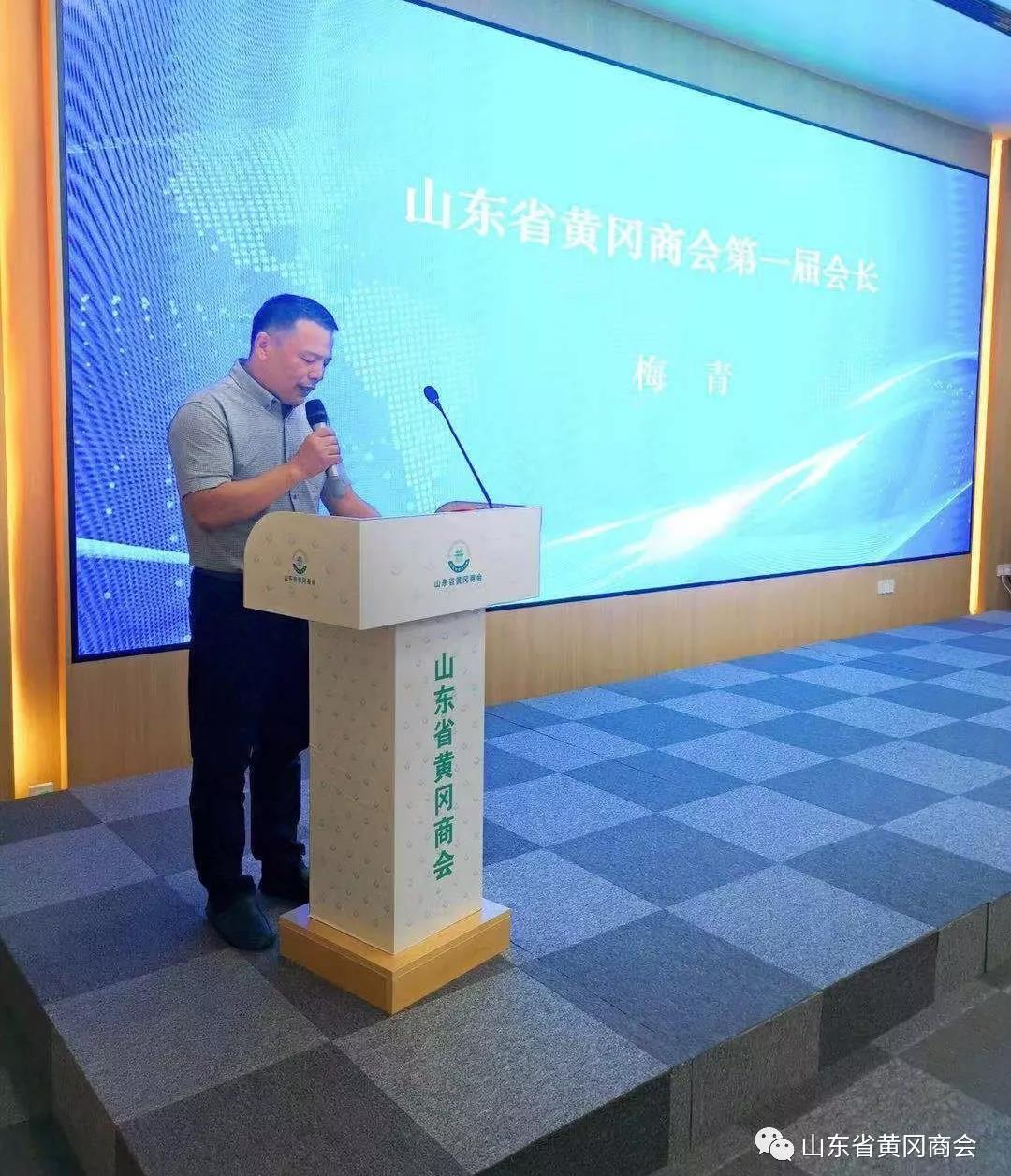 山东省黄冈商会新当选会长梅青先生上台发言!